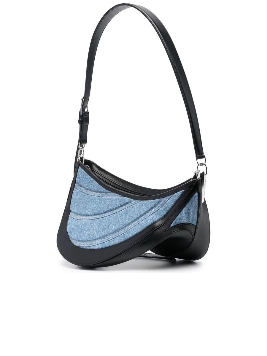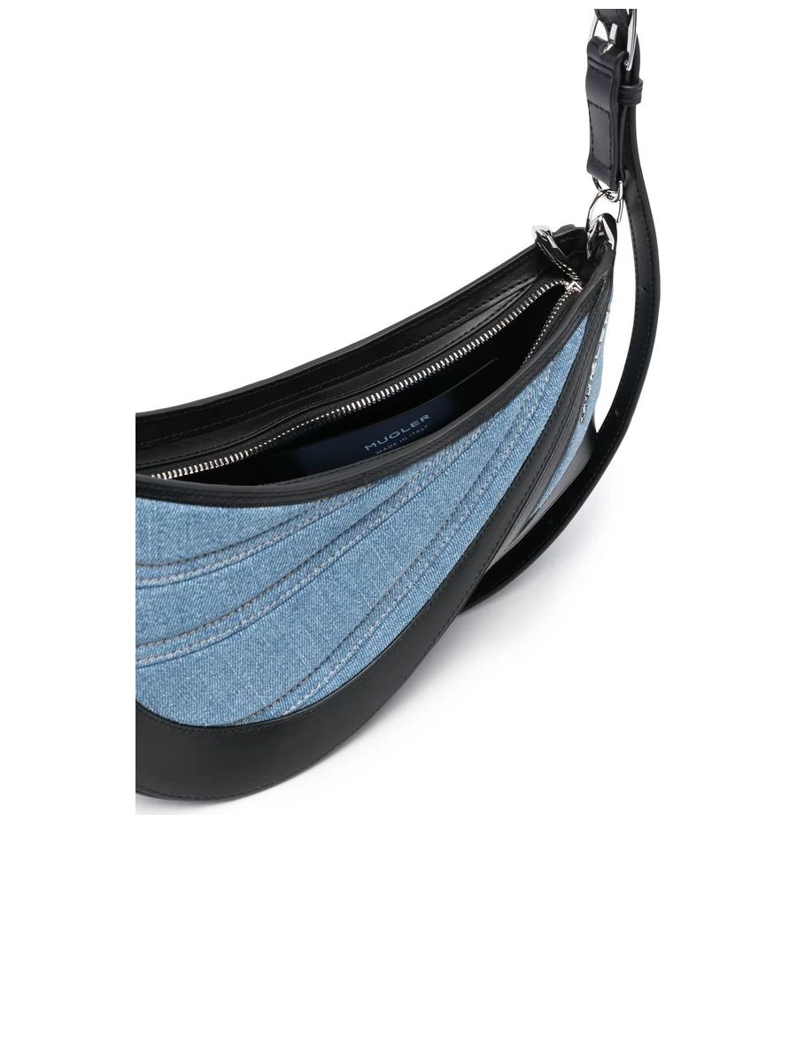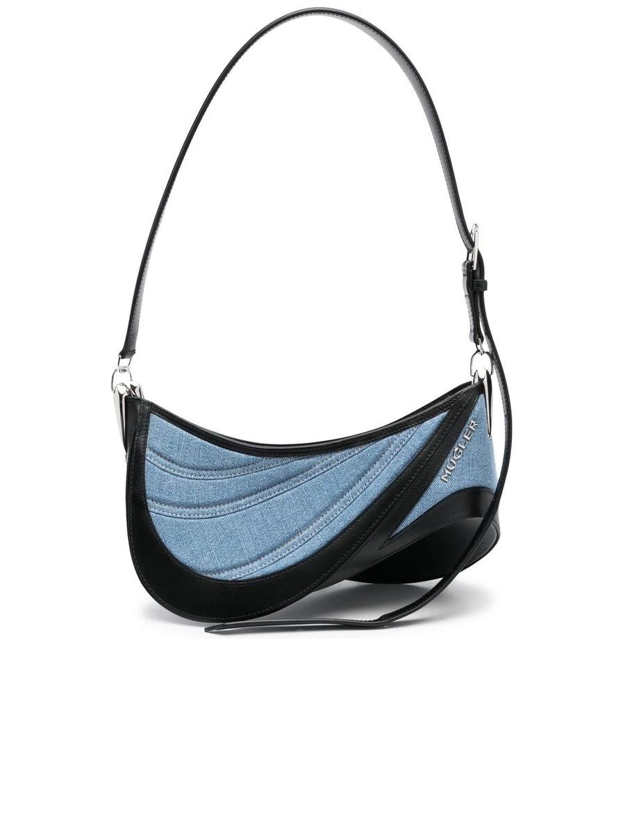 Indulge in the refined craftsmanship of the Spiral Curve 01 crossbody bag, a masterpiece from the MUGLER fashion house. Impeccably designed with a unique panelled structure, the bag features distinguished silver-tone logo lettering. The adjustable shoulder strap ensures a customisable fit, while the top zip fastening secures a spacious main compartment, all exquisitely crafted in Italy.