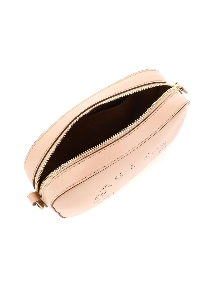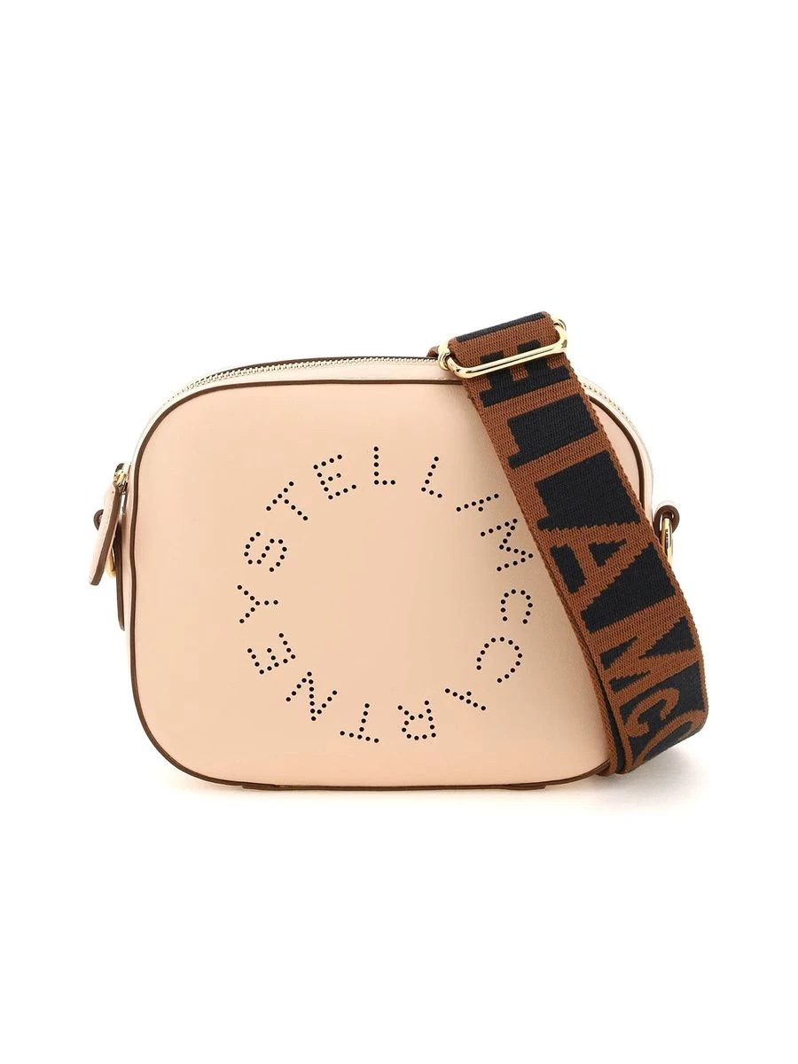 Crafted from a blend of alter-nappa materials, this sleek camera bag boasts the iconic Stella McCartney design feature, a perforated front logo. Complemented with a contrast adjustable strap sporting a bold jacquard logo, this versatile accessory is lined with a faux suede interior and comes with a practical slip pocket. Its refined aesthetic is completed with tasteful gold-tone hardware.