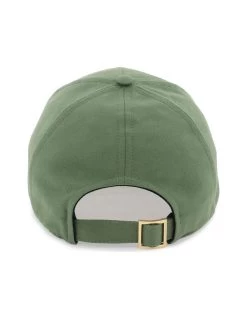 Sport a crisp look with this charming baseball cap fashioned from durable cotton canvas. The cap boasts a classic stitched visor and an adjustable strap with a sliding buckle, finished with gleaming gold-tone metalware. A unique S emblem is tastefully embroidered at the front, adding a subtle nod to the designer’s flair.