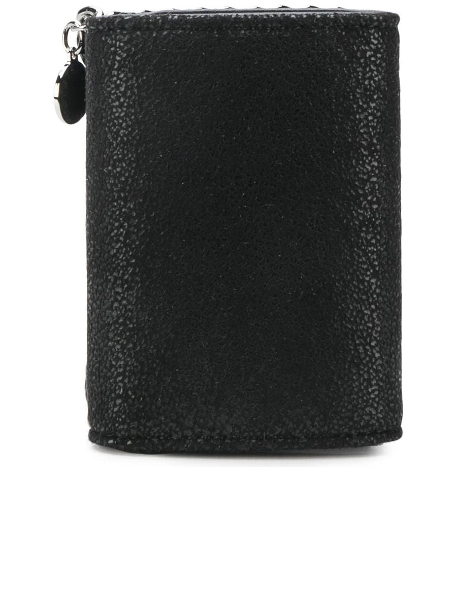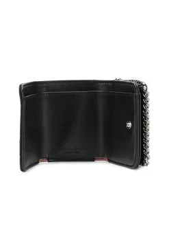 This stylish Falabella continental wallet boasts a sophisticated curb chain trimming and a sleek silver-tone finish. Its foldover top uncovers a compartmentalised interior complete with engraved branding, exemplifying Stella McCartney’s commitment to blending modernity with ethical fashion sensibilities.