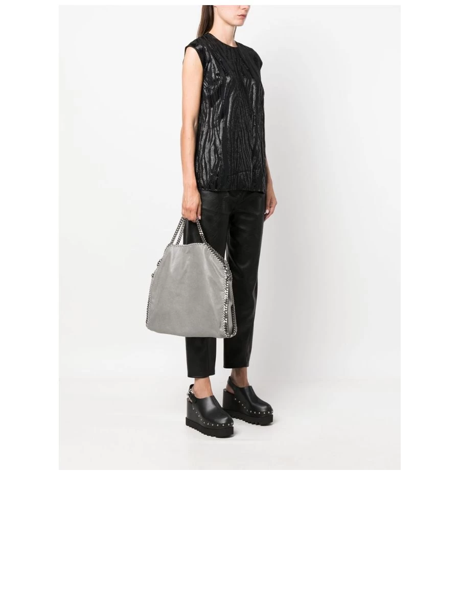 Indulge in sustainable luxury with the large Falabella foldover tote by renown designer. This elegant tote, adorned with a distinct chain-link trim and a shimmering logo charm, is not only a stylish accessory but also a statement of responsible fashion. Its clever magnetic fastening opens to reveal a spacious main compartment, complete with an internal zip pocket for keeping your essentials secure. Crafted with meticulous attention to detail, this piece accentuates sophisticated charm and ethical elegance.