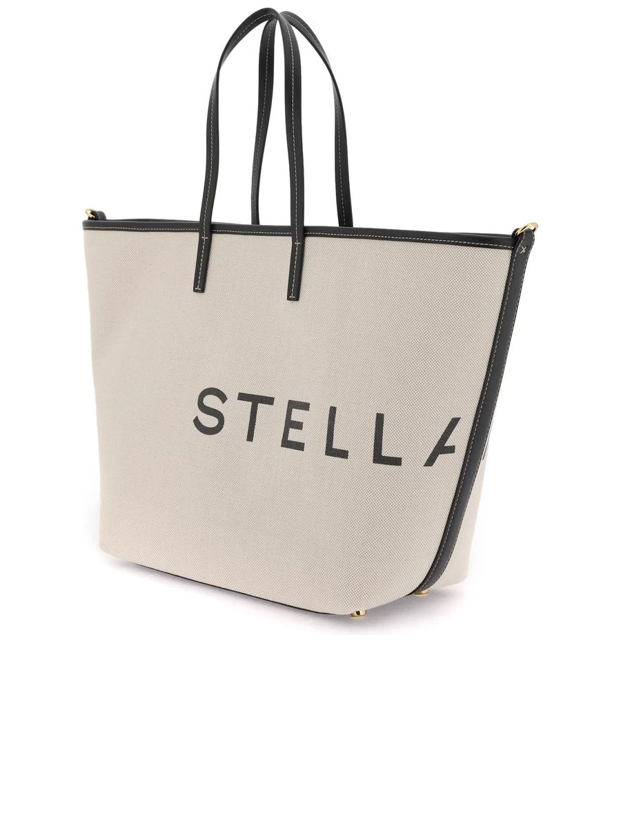 A luxurious organic cotton-blend tote bag accentuated by its striking contrast logo design. Comprising of Alter Mat handles and trims with a secure pin closure, the piece boasts a sumptuous suede interior. Its base is defended by protective studs, complemented by exquisite gold-finished metalware, all meticulously crafted in Italy.