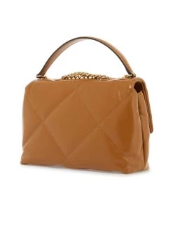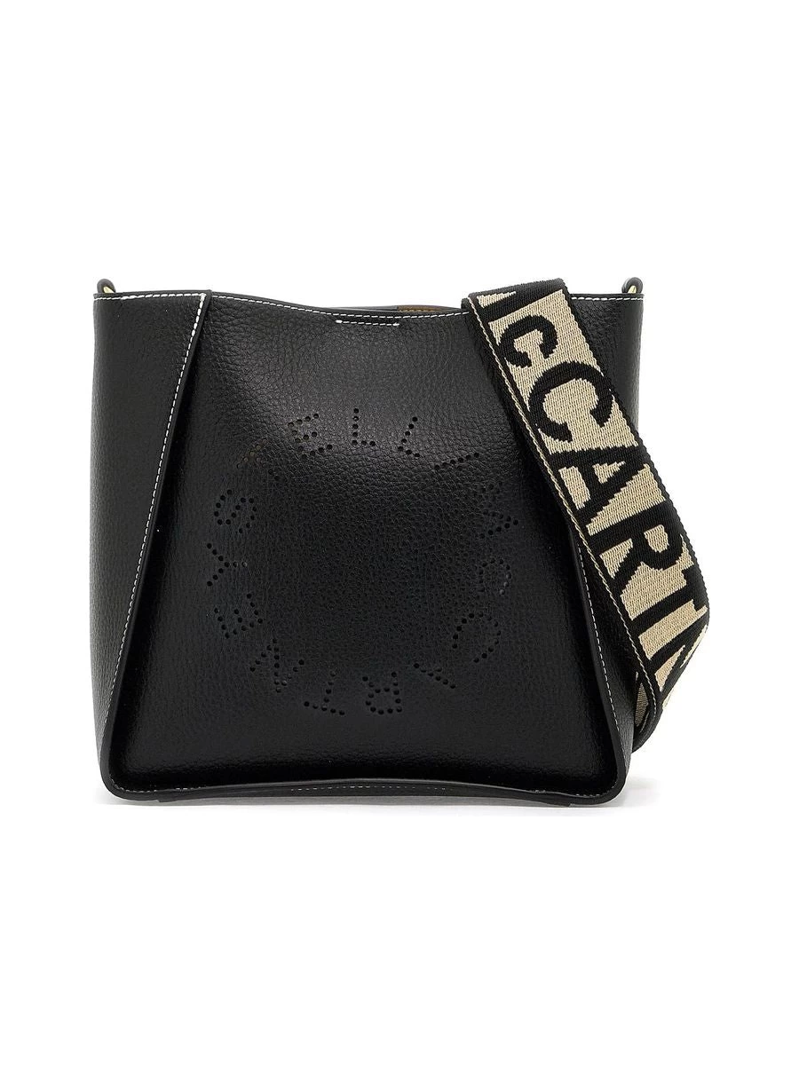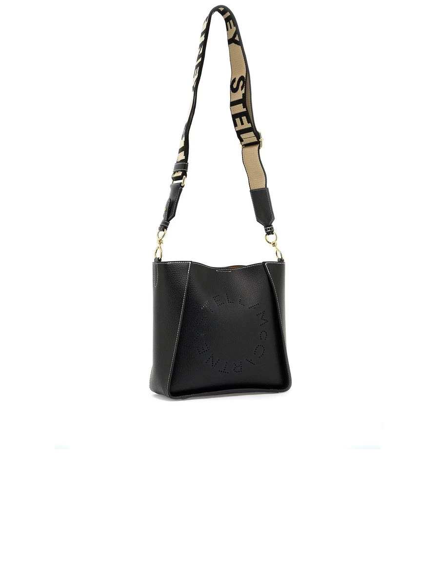 The crossbody bag is a chic and sustainable choice for those looking to make an eco-friendly fashion statement. It features a grained faux leather construction with a perforated logo design, complemented by a unique jacquard fabric shoulder strap emblazoned with the brand’s lettering. The bag boasts a press-stud closure and an elegant eco-suede lined interior, equipped with a practical open flat pocket. It’s accented with gold-finished metal hardware, adding a touch of sophistication.