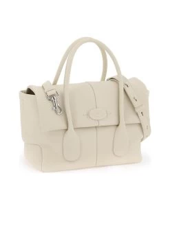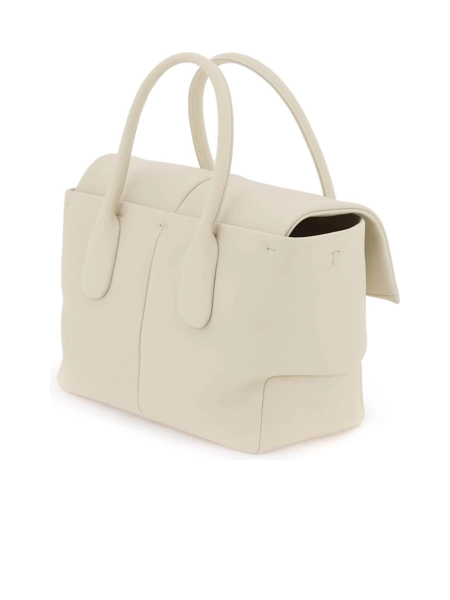 Finely crafted with natural grain leather, this elongated handbag boasts a sleek structure, featuring a magnetic flap, an emblematic oval logo, and silver-finished embellishments. Lined with leather, the interior presents both open and zippered pockets. Dual tubular handles, an adjustable shoulder strap, and protective feet add both style and practicality to this exquisite piece, all while maintaining its quintessential British charm.