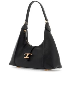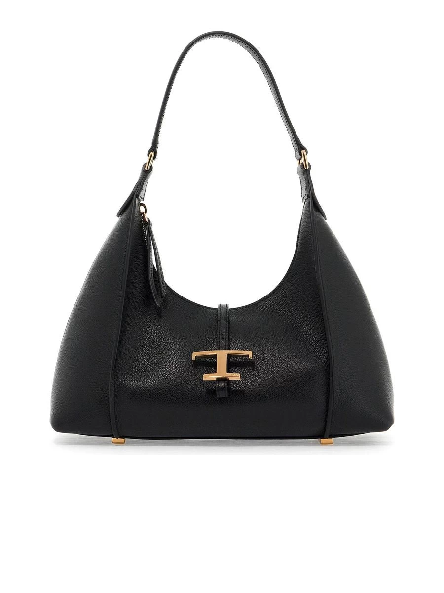 Indulge in the elegance of a Tod’s crafted shoulder bag, boasting a grained leather texture complemented by gold-finished metalware accents. The bag features a zipper closure leading to a canvas-lined interior with a solitary open pocket, and the base is safeguarded with protective studsāa testament to both functionality and refined style.