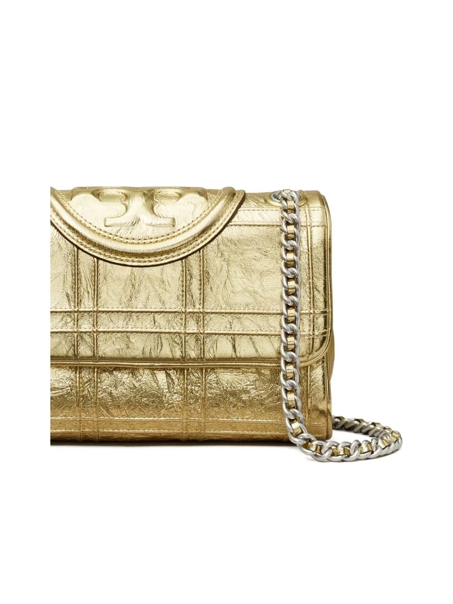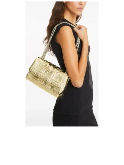 Crafted with sumptuous gold-tone nappa leather, this shoulder bag features a distinctive crinkled finish, adorned with an embossed T Monogram. A foldover top with magnetic fastening secures your belongings, while the sliding chain-link shoulder strap offers versatile carrying options. The bag’s interior boasts a partitioned compartment, an internal logo plaque, and dedicated slip and zip pockets, all lined with soft cotton for added luxury.