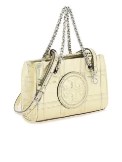 Indulge in the elegance of this mini Fleming bag, a luxurious accessory designed to punctuate any ensemble with its sophisticated charm. Crafted from fine laminated leather featuring a distinctive diamond-patterned quilt and accented with an oversized bombé Double T emblem. The piece is complete with a woven leather chain and boasts a fabric-lined interior equipped with a singular card slot. Its multifaceted straps allow for versatility, offering both an adjustable and detachable shoulder strap alongside its elegant chain handles, all culminating in exquisitely finished gold-tone metalware.