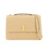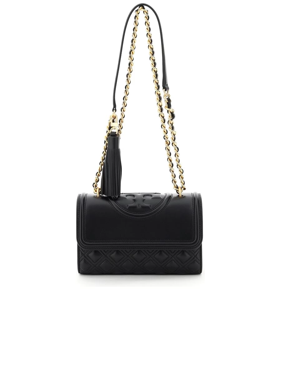 This quintessentially British piece, the Fleming small quilted leather bag, offers a slice of luxury with its exquisite quilted design and opulent gold-tone metal hardware. The detailing includes a refined embossed logo for an understated yet elegant touch. Carefully crafted with both a sliding chain and woven leather strap, it provides versatility coupled with a stylish tassel that adds a playful flair. The magnetic closure ensures your essentials remain secure within the sumptuously lined interior, which offers organisational ease with a zipped pocket and additional compartments. Perfect for everyday elegance or a sophisticated evening ensemble.