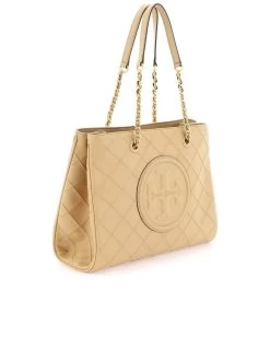This Fleming tote bag is a testament to charming design, offering a touch of elegance to any outfit. Crafted with soft leather and enriched with diamond quilting, it features the iconic embossed double-T monogram on the front. A magnetic closure secures your belongings, while the herringbone cotton-lined interior is equipped with a zippered pocket and an additional open pocket for easy organisation. The luxurious double leather handle is accentuated with a woven chain and leather insert, finished in exquisite gold metal hardware.