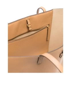 A sophisticated shopper bag meets practical elegance with a grained texture finish, alluding to timeless style. Adorned with the signature Double T motif and a logo patch on the front, the bag features an open top with a secure lobster claw fastening. The dual long top handles ensure comfortable carrying, while the suede-lined interior includes an internal logo stamp and a zip-fastening pocket for essentials.