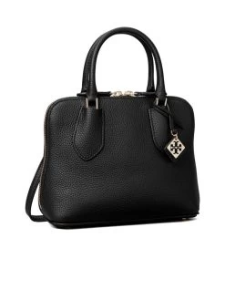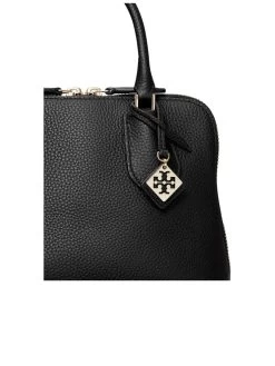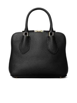 This handbag presents a sophisticated choice with its grained leather texture and elegant gold-tone hardware. Its dual zip fastening ensures security, while the adjustable and detachable shoulder strap along with the two rolled top handles offer versatile carrying options. The bag’s sturdy metal feet protect the base, and the subtle yet impactful logo charm adds an iconic finish.