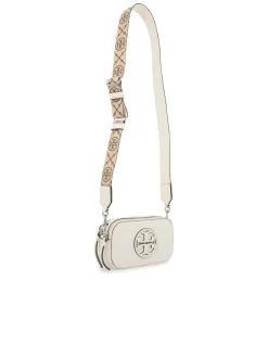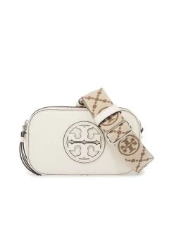 This Miller Crossbody Bag showcases the signature sophistication of Tory Burch with an embossed double-T monogram front. Crafted from grained leather, the design offers a suede interior and two zippered compartments, one featuring an additional pocket. The bag’s removable shoulder strap allows for effortless customization, and features a jacquard Tory Burch logo. Gleaming gold-finish hardware adds a hint of glamour.