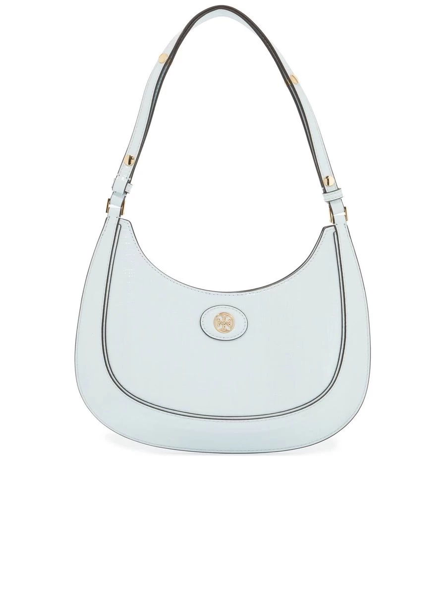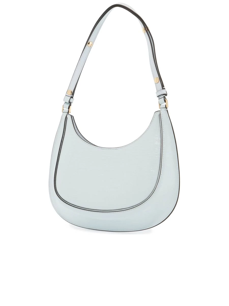 Admire the sleek design of this polished half-moon bag, featuring a signature metal logo, magnetic closure, and a refined suede interior with a nifty card slot. Complete with an adjustable handle, it’s a chic choice for your essentials.