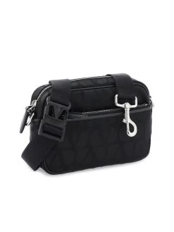 Elevate your daily essentials with a touch of sophisticated charm. The Iconographe Crossbody Bag, meticulously stitched from a robust nylon blend, is adorned with the quintessential monogram motif. This practical piece champions convenience with a sleek flat front pocket and a secure zippered main compartment that houses three slots for your credit cards. Finished with a ribbon strap, seamlessly adjustable by sliding through the iconic VLogo buckle, and complemented with exquisite palladium metalwork.