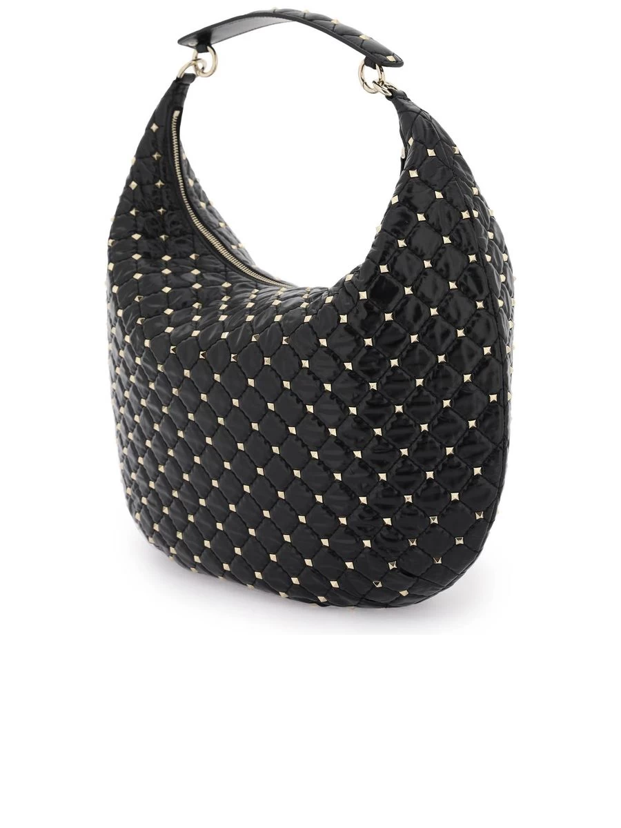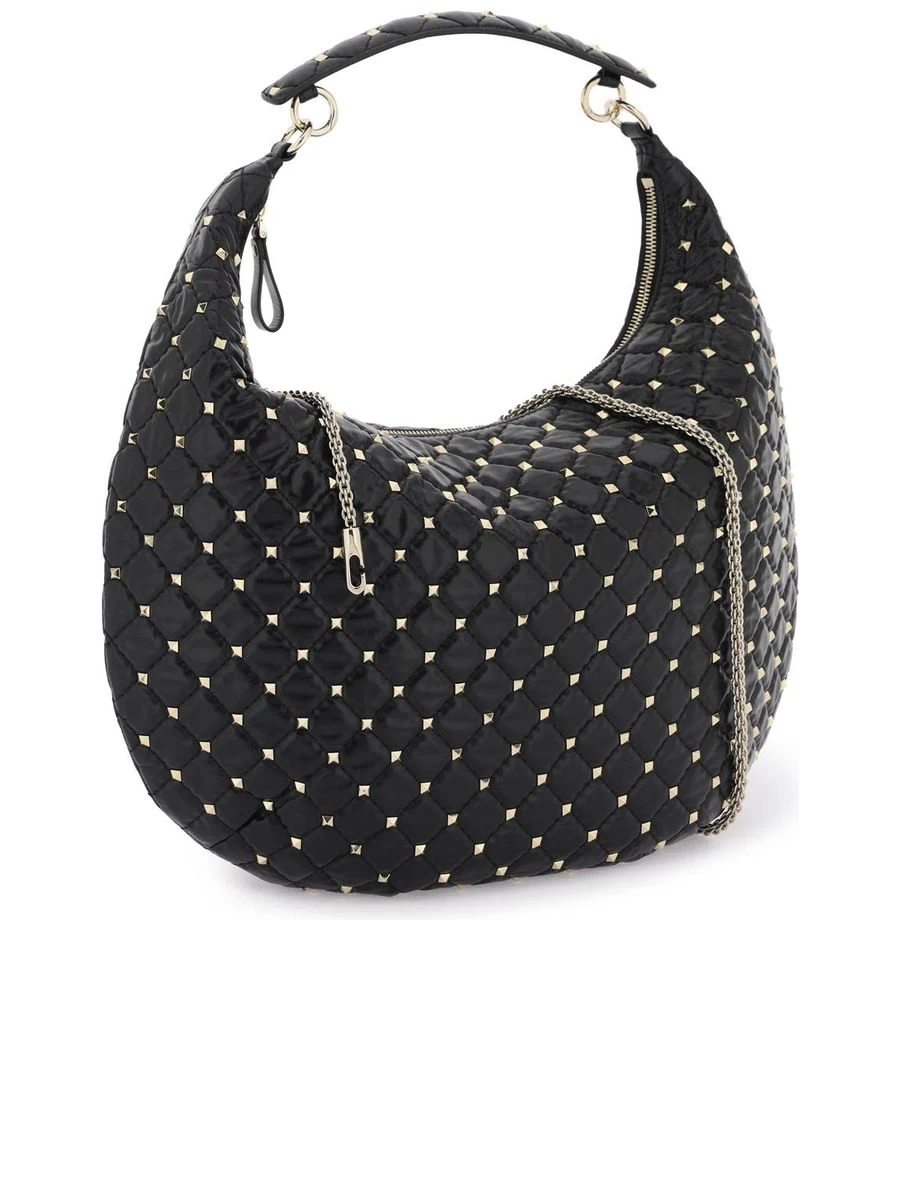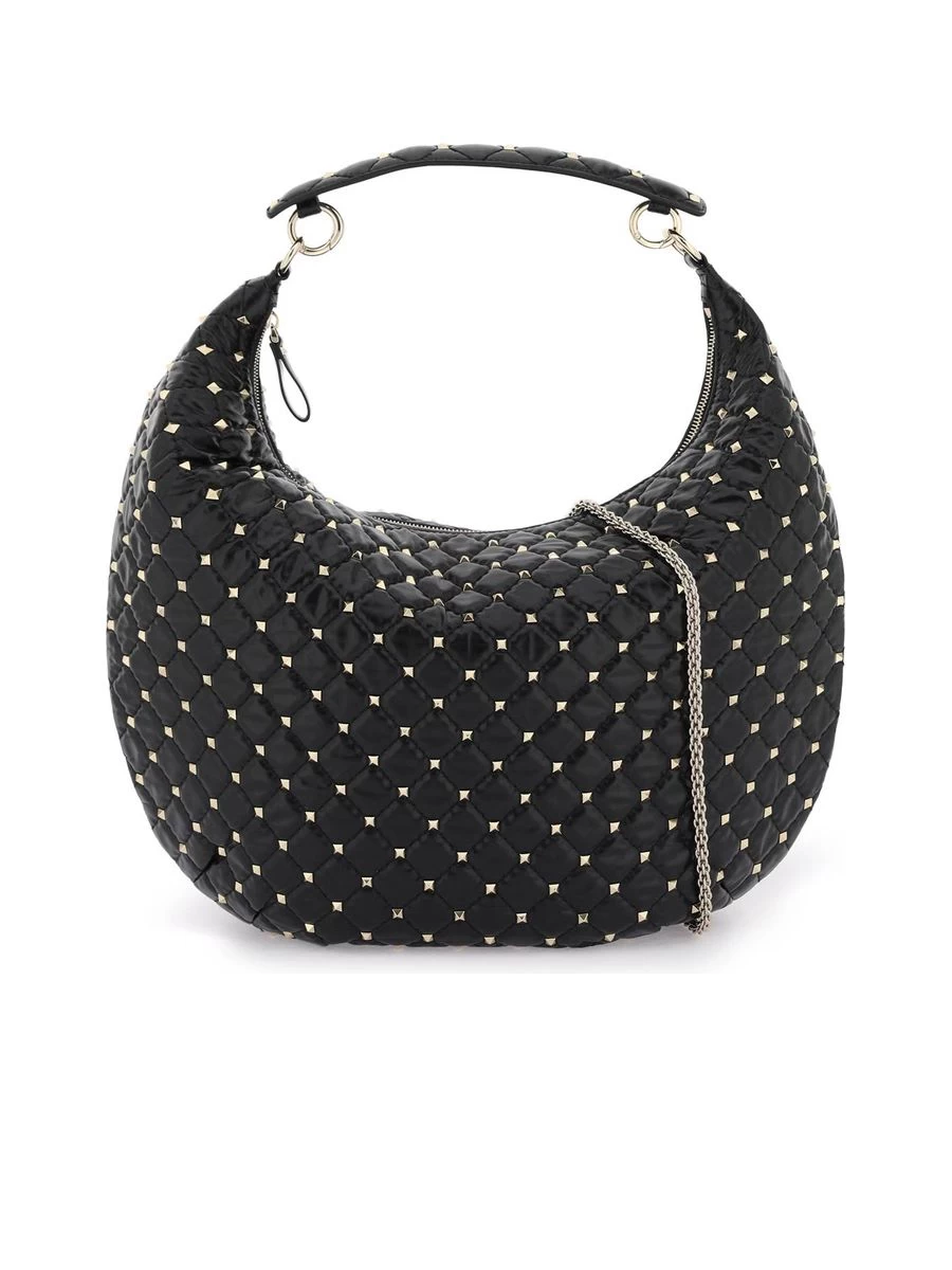 Indulge in the epitome of elegance with the ‘Rockstud Spike’ hobo bag, a statement piece designed by Valentino Garavani. Crafted from premium quilted leather, this accessory is adorned with signature small studs, providing a look that’s at once luxurious and edgy. Its versatile design accommodates a range of carrying styles with removable elements, allowing it to be worn on the shoulder, across the body, or by hand. The plush nappa leather lining and platinum-finished metalware further assert the bag’s high-end allure.