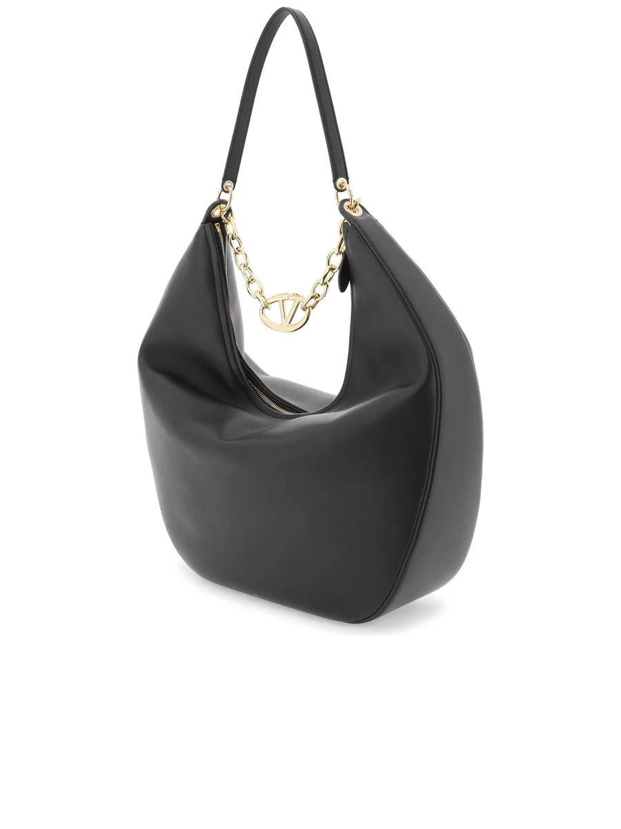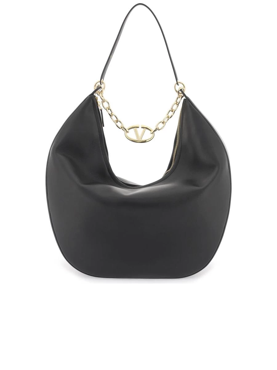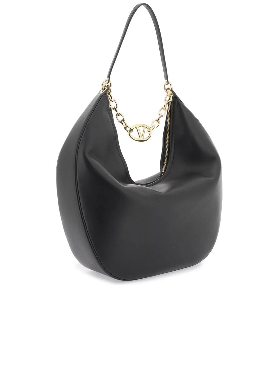 Discover an emblem of contemporary elegance with the VLogo Moon Bag hobobag, a luxurious leather creation with a distinctive chain handle adorned by the classic VLogo Signature. The perfect accessory for those who appreciate discreet glamor and artisanal craftsmanship, with a top zip securing your essentials in the soft nappa-lined compartment.