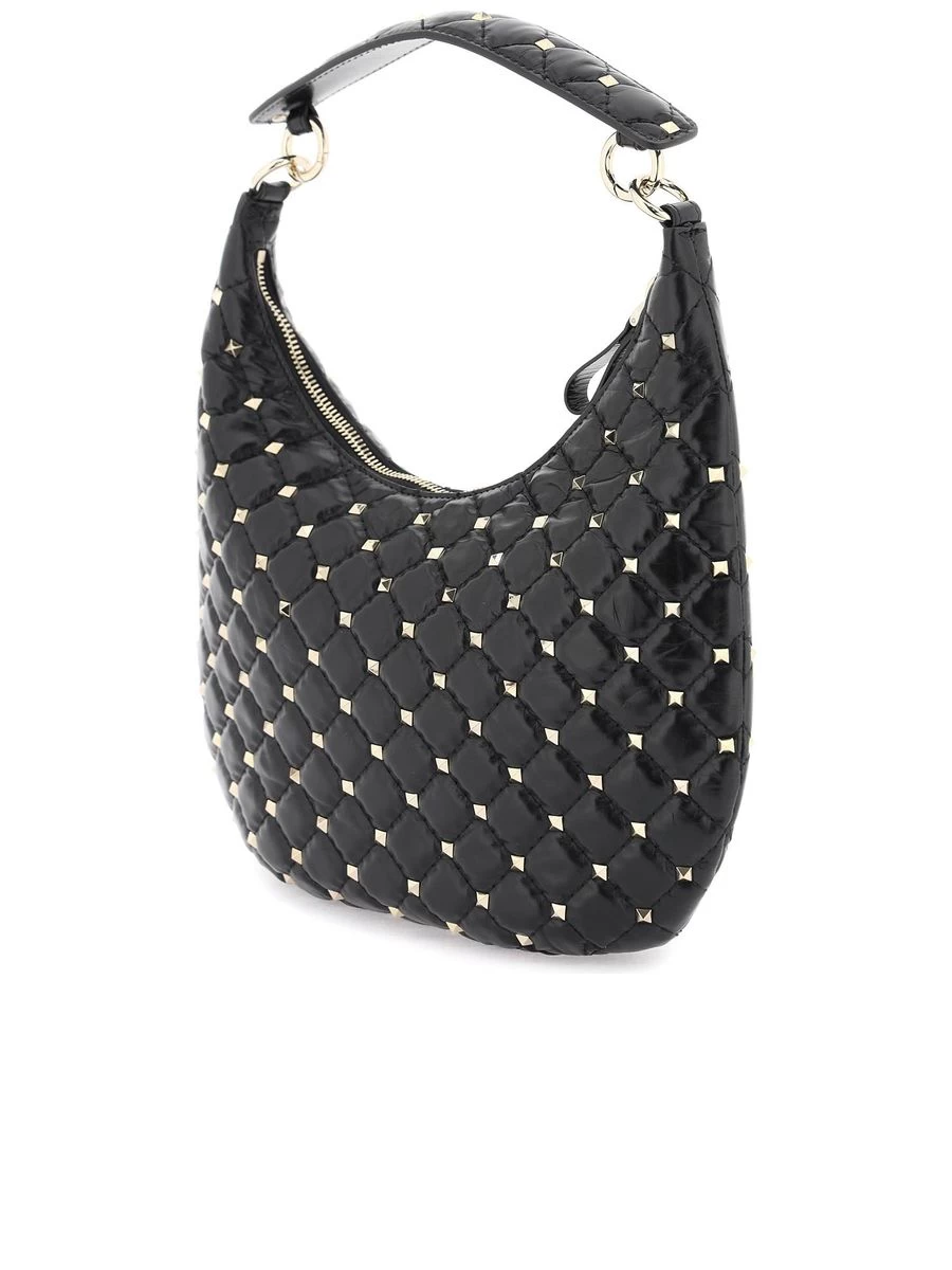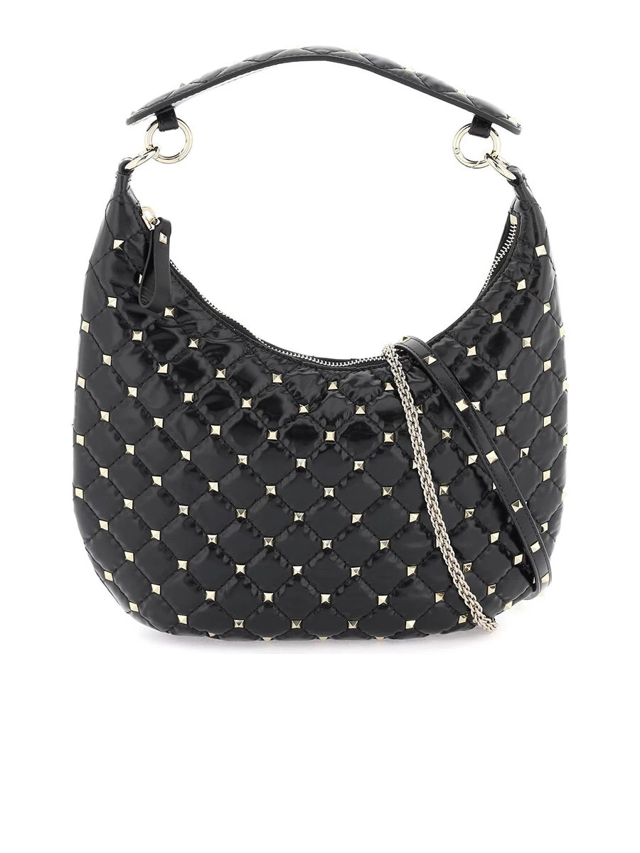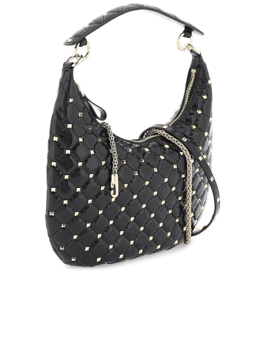 Embrace the blend of luxury and edginess with this small hobo bag, from the iconic ‘Rockstud Spike’ range. Crafted in fine quilted leather, the bag features the renowned platinum-finish studs. Its multifunctional straps allow it to be worn on the shoulder, cross-body, or carried by hand, enhancing its versatility. The zip closure ensures security while the sumptuous nappa lining adds a touch of elegance.