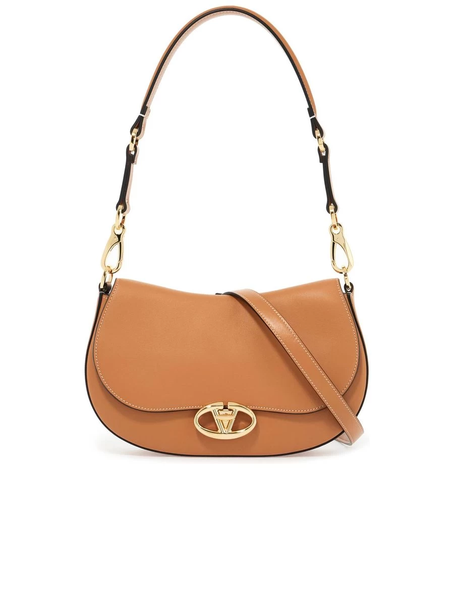 Crafted from supple nappa calf leather, this fluid shoulder bag boasts a smart and sophisticated design. It fastens securely with a distinctive Signature Vlogo twist lock and houses a suede-lined interior with a handy open pocket. The versatile straps allow for both crossbody and shoulder wear, complemented by gold-finish metallic accents that add a touch of refined elegance.
