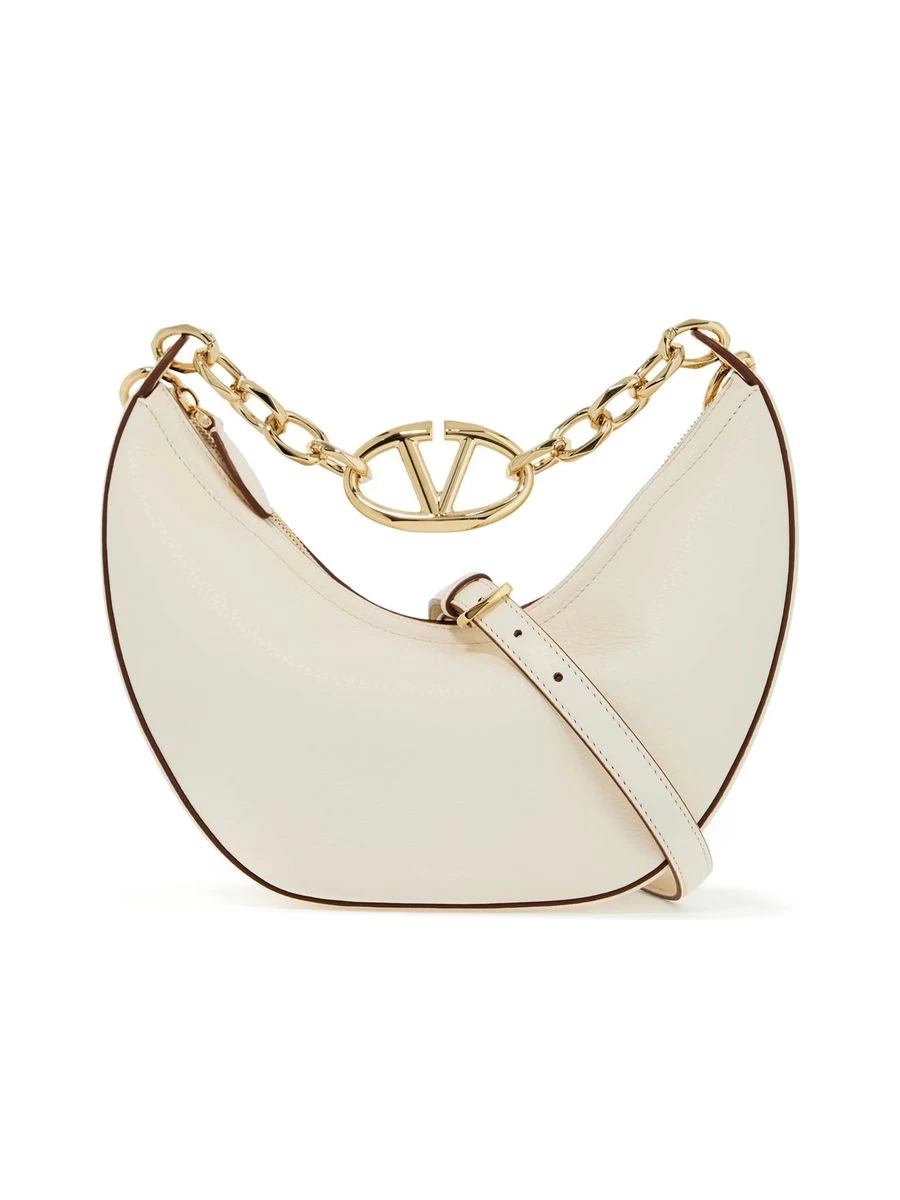 Indulge in the epitome of luxury with the VLogo Moon Bag hobo, crafted from fine calf leather. This elegant piece boasts a versatile chain handle embellished with the unmistakable VLogo Signature, a smooth top zip closure, and a leather strap to seamlessly transition to a crossbody style. Finely lined with nappa leather and featuring a practical credit card slot, this Italian-made accessory is a harmonious blend of form and function.