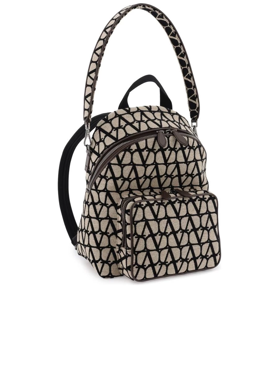 An exquisite Valentino Garavani backpack presented in the Toile Iconographe design, which is accentuated by elegant contrasting leather trim. It showcases a sophisticated two-way zippered closure and offers an organized interior featuring an open leather pocket. The backpack’s design is elevated further by a handy front pocket, versatile adjustable shoulder straps, and an optional detachable shoulder strap. The hardware is beautifully finished in ruthenium, adding to the item’s overall luxurious appeal.