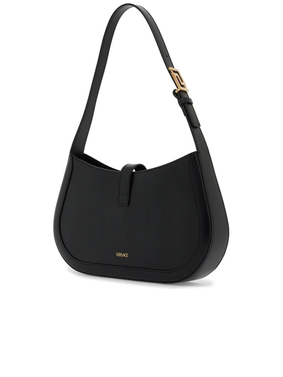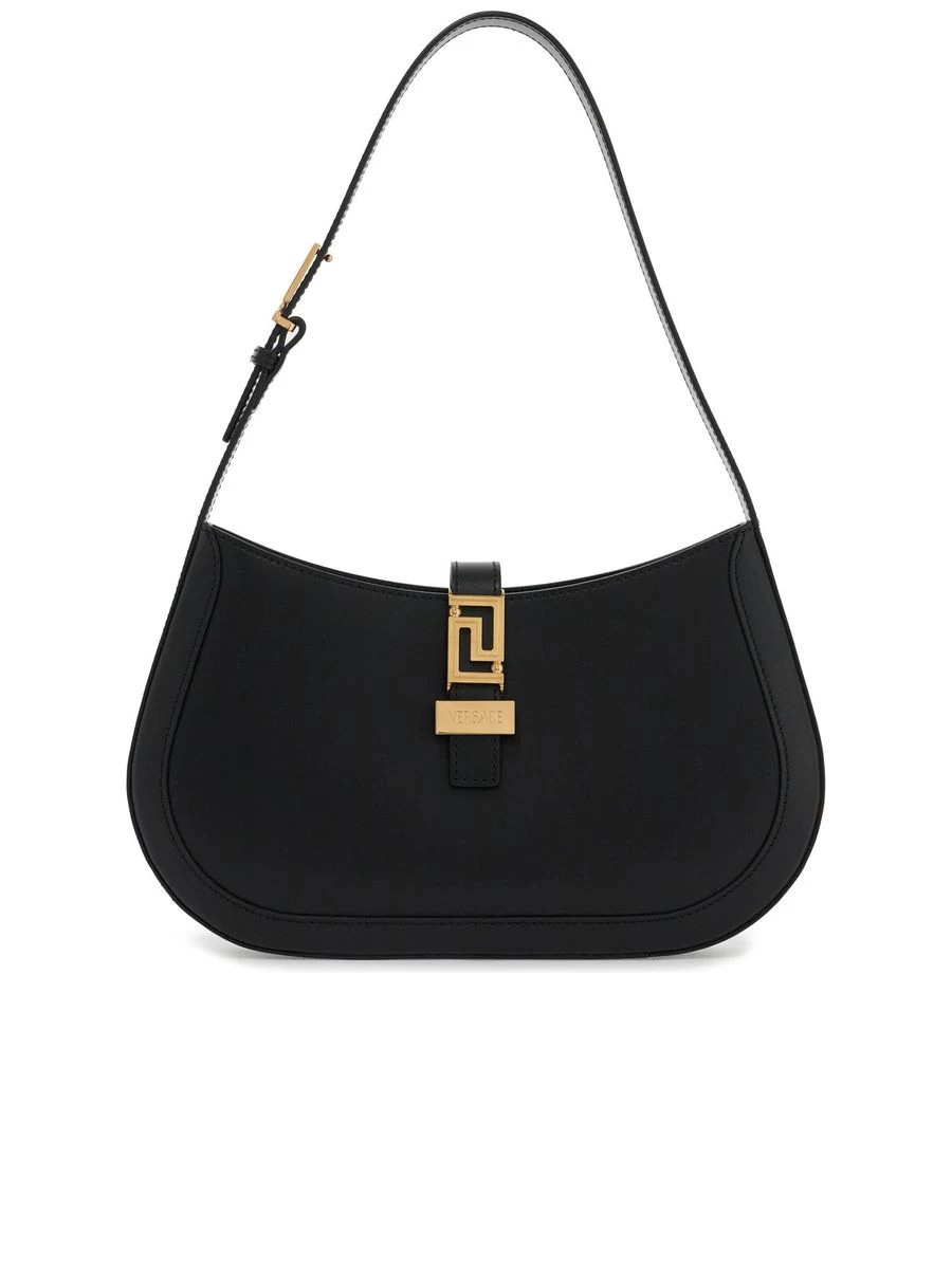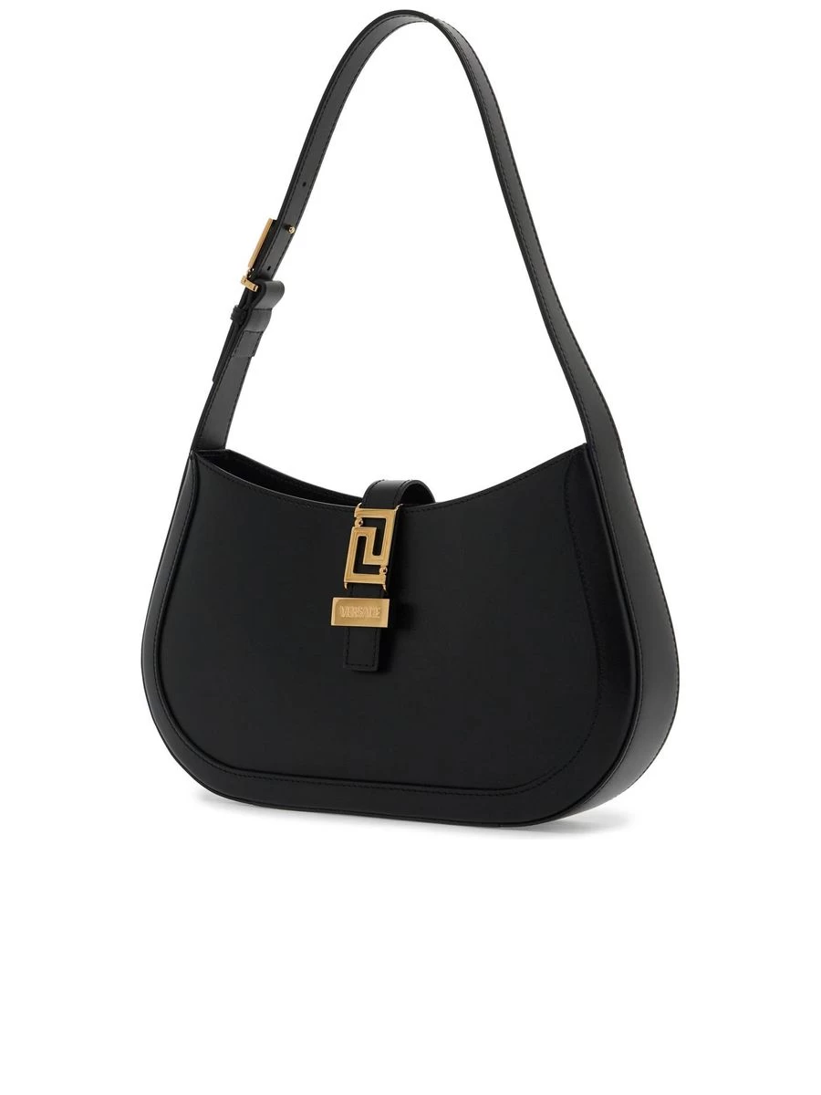 Channel your inner elegance with a touch of Greca-inspired opulence. This smooth leather hobo bag is adorned with lustrous golden detailing, adding a dash of glamour to its sleek curves. Secured with a magnetic closure, it opens to reveal a sumptuously lined leather interior, complete with a practical zip pocket. The adjustable handle ensures a customizable carrying experience.