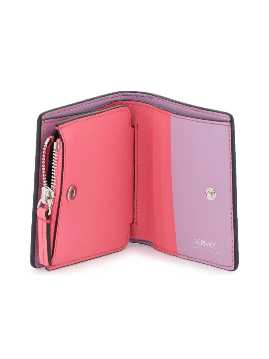 Emanate sophistication with this grained leather bifold wallet, adorned with the iconic Medusa applique. A compact and elegant solution to keep your essentials secure and organised, featuring a press-summary closure, multiple card slots, a bill compartment, and a separate zipped pocket for coins. Crafted with the utmost attention to detail, this wallet is a small treasure designed to complement your daily routine.