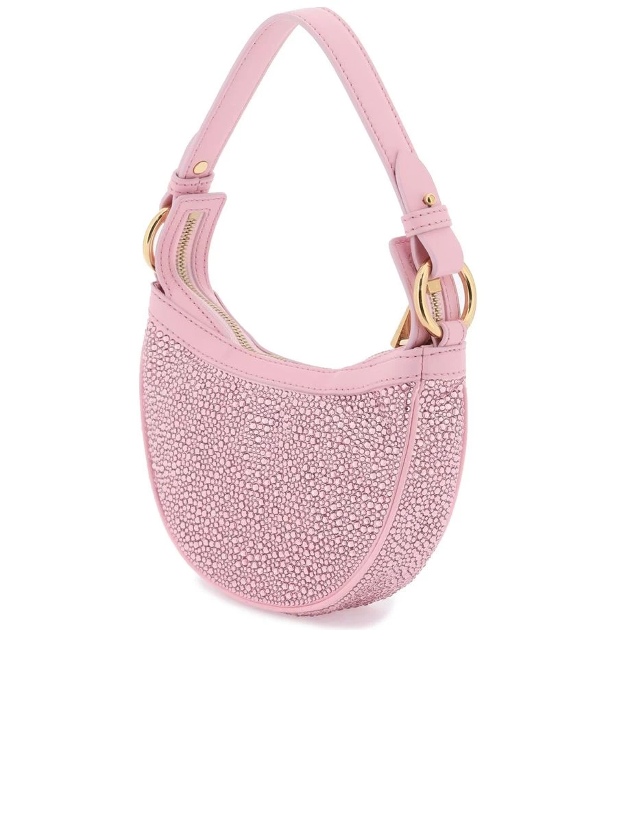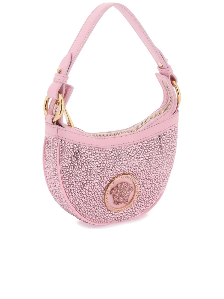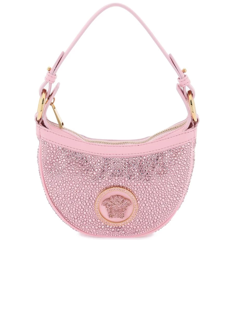 Adorn your arm with this glamorously encrusted mini hobo bag. Designed with a sparkling satin silhouette and an iconic Medusa charm, it brings a touch of luxury to your ensemble. Featuring a zippered top and a comfortable detachable handle, this piece is as practical as it is dazzling. Crafted to the highest standards in Italy.